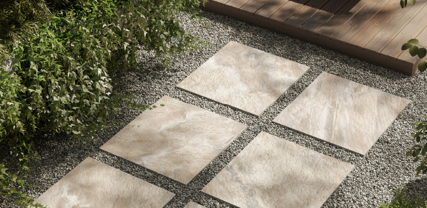 Для устройства уличных дорожек лучше всего использовать керамогранит увеличенной толщины 20 мм из гаммы Italon X2. Он не боится повреждений и легко выдерживает даже самые сильные нагрузки — как механические или ударные, так и абразивные. Такая разновидность плитки представлена сразу в нескольких коллекциях Italon. Она имеет особую фактурную поверхность Грип, которая предотвращает скольжение и делает покрытие максимально безопасным.